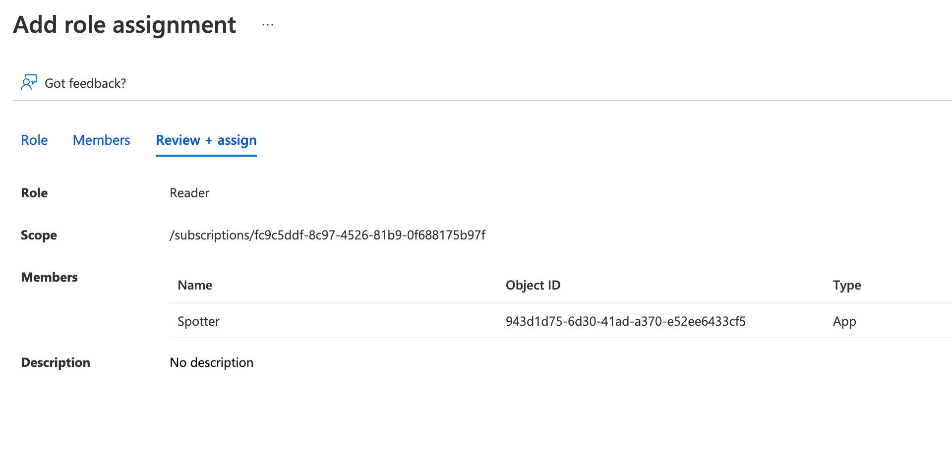 If you’re using management groups and you want data from all your subscriptions, assign Reader role to Spotter at the management group that governs all the subscriptions.